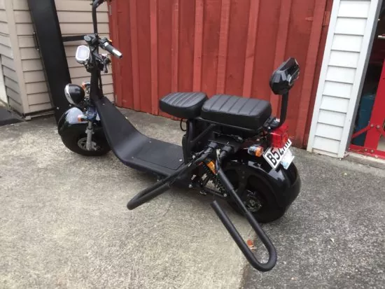 The Venture road legal Harley Style Scooter is all set up with a surf board rack & is heading to the Mount for some holiday fun.