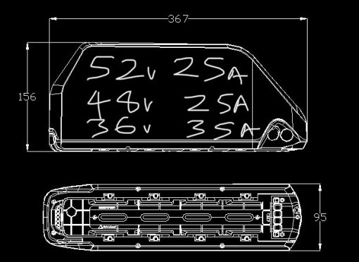 52volt 25ahr 1300whr battery with quality Samsung cells. Range up to 240km depending on terrain, speed, weight etc.